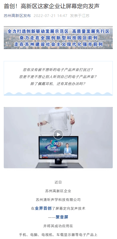 《全球首創(chuàng)!高新區(qū)這家企業(yè)讓屏幕定向發(fā)聲》