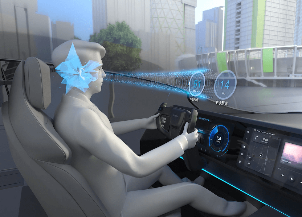集成了聚音屏的電子產(chǎn)品,直接使用屏幕作為發(fā)聲單元。聚音屏采用厚度僅約0.1毫米的全透明復(fù)合材料,使用參量陣算法控制單元、專有控制芯片,驅(qū)動屏幕上層材料進行微米級振動,發(fā)出高指向性、低失真的聲音,實現(xiàn)發(fā)聲方向和角度的動態(tài)控制。用戶無需戴耳機,即可在公共空間得到“獨立專屬聲場”。