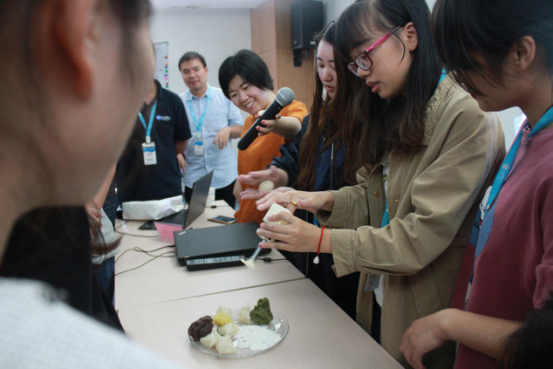 清聽聲學的小伙伴們不只有智慧,還有美貌和巧手。在智力比拼結束后,更有美女老師手把手教大家做月餅。脫離辦公室的鍵盤、放下手里的螺絲刀與器件,原本各司其職的清聽人拿起軟糯的冰皮和餡料,有模有樣地揉圓、攤平、包裹、入模……小巧的冰皮月餅就成型啦!