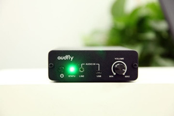 功放盒子,采用金屬機(jī)身,配合黑色噴砂陽(yáng)極氧化工藝,品質(zhì)感十足,前面有電源鍵、指示燈、Audio in接口(音頻線和USB數(shù)據(jù)線均可接入)、音量旋鈕;后面是電源接口和Audio輸出接口;底部四個(gè)角各有1個(gè)防滑硅膠墊。